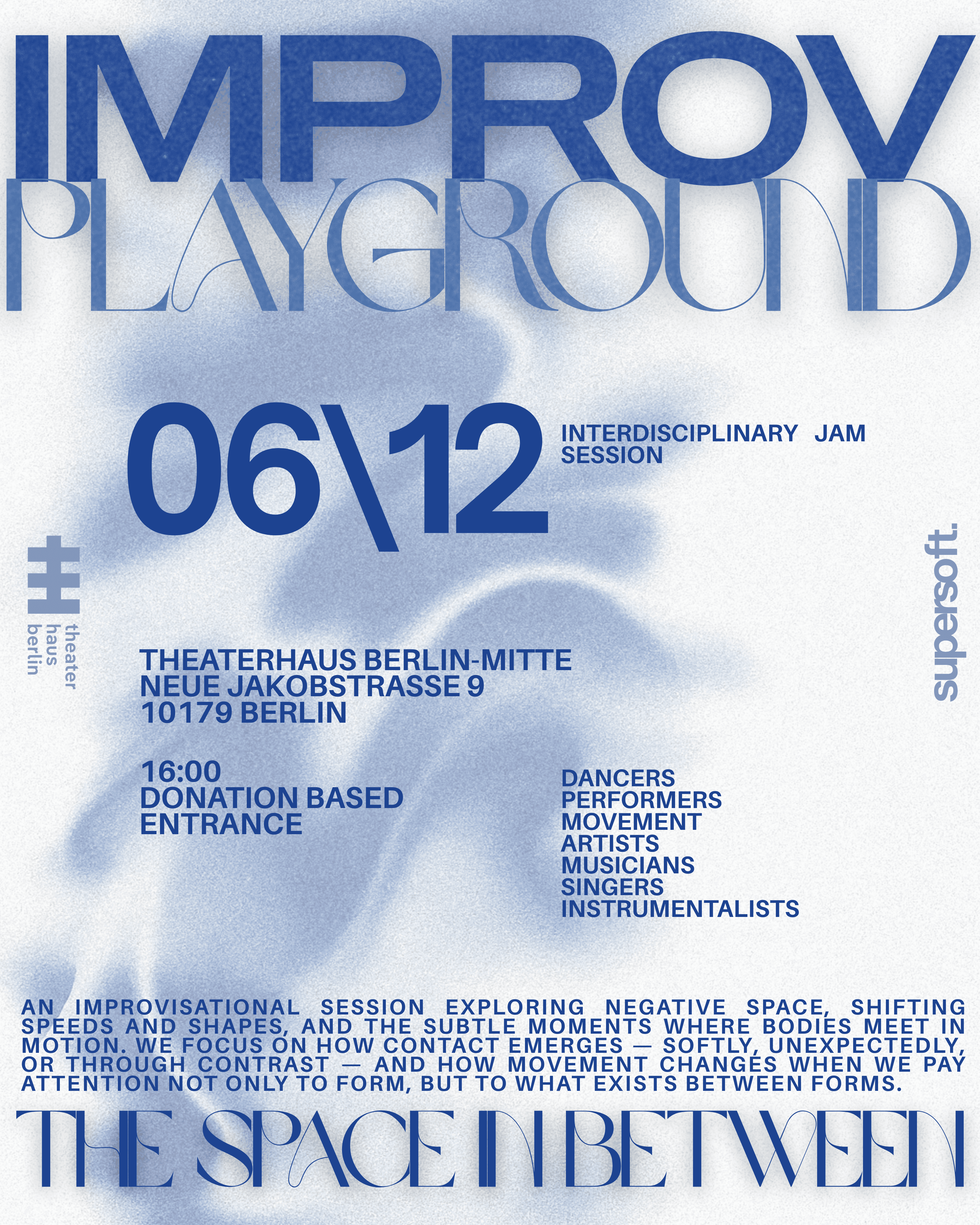 The Space in Between is an improvisational session exploring negative space, shifting speeds and shapes, and the subtle moments where bodies meet in motion. We focus on how contact emerges — softly, unexpectedly, or through contrast — and how movement changes when we pay attention not only to form, but to what exists between forms.