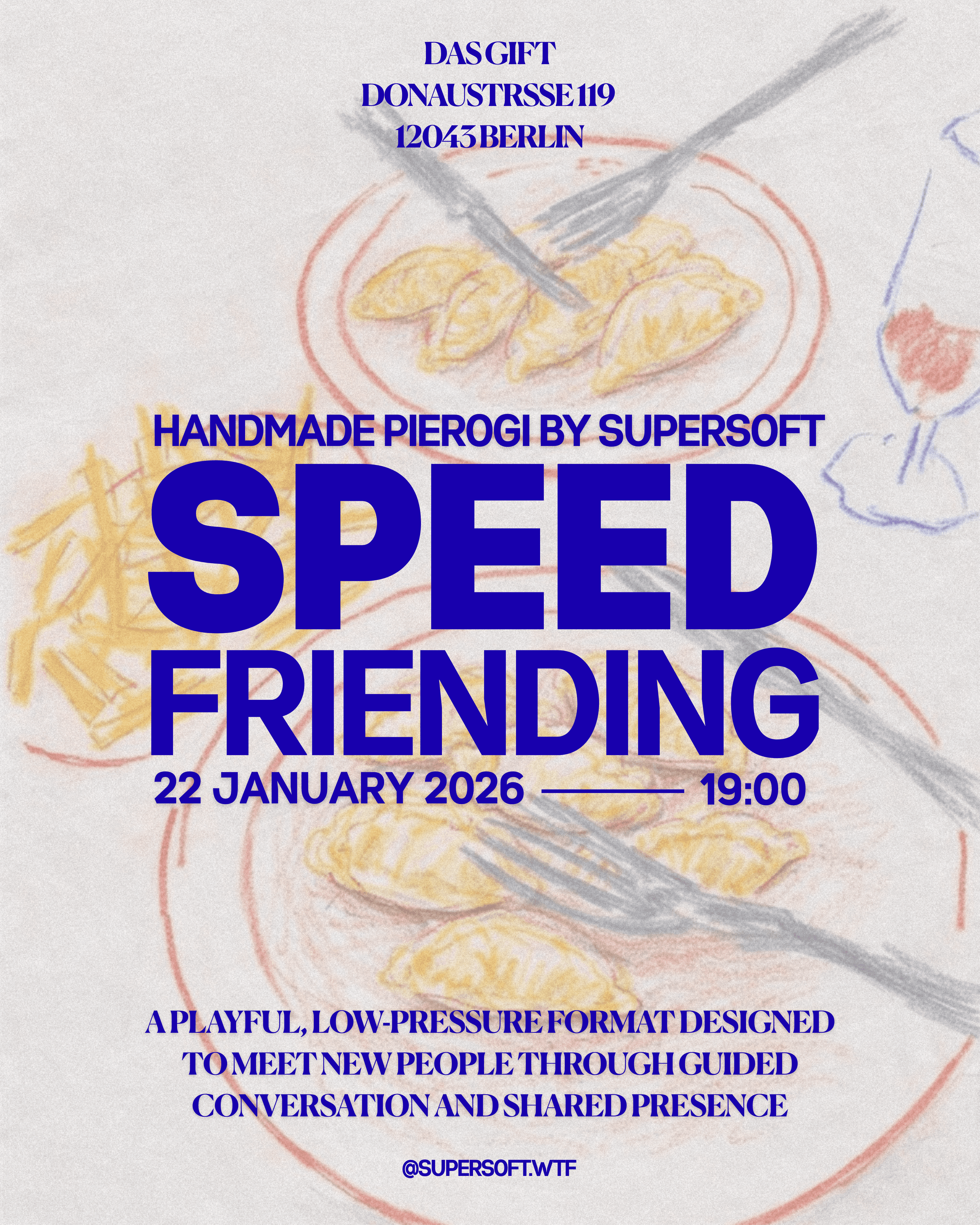 like speed dating, but in a different format — relaxed, pressure-free and without the awkwardness. a welcoming space for everyone, beyond gender, orientation or background. come by, meet new people and spend an evening with us